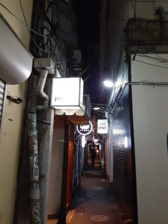 人形小路はその名の通り、人がひとりやっと通れるくらいの、ビルとビルの隙間道。